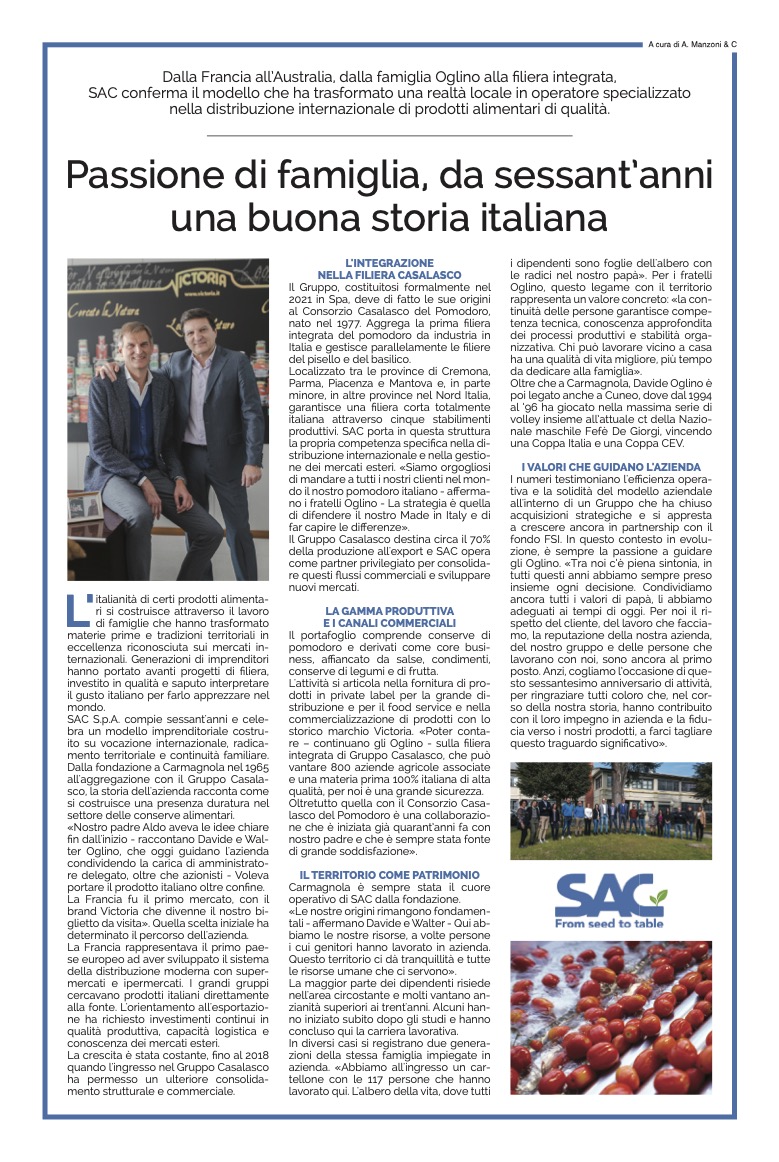 Fondata nel 1965 da Aldo Oglino, SAC è passata poi ai figli Davide e Walter, che hanno continuato con orgoglio il percorso iniziato dal papà, portando avanti i valori di famiglia e quelli del brand Victoria. Celebriamo questa ricorrenza con Gruppo Casalasco e tutte le persone – dipendenti, clienti, collaboratori – che negli anni hanno contribuito con passione a questo traguardo.